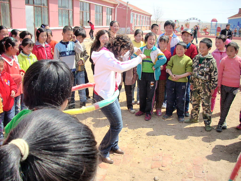 而教室外面一位老师正在转呼啦圈,它可以锻炼身体,还可以展现舞姿.