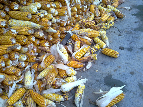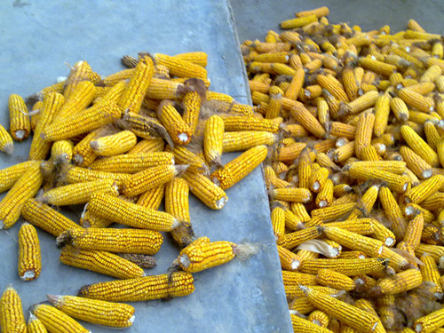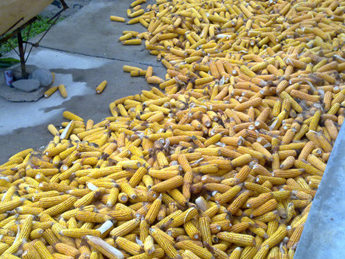 这些黄橙橙的玉米,是母亲辛劳了一年的结果,每日都是面朝黄土背朝天,风吹日晒,是一家人的希望。希望今年的玉米能卖个好价钱。