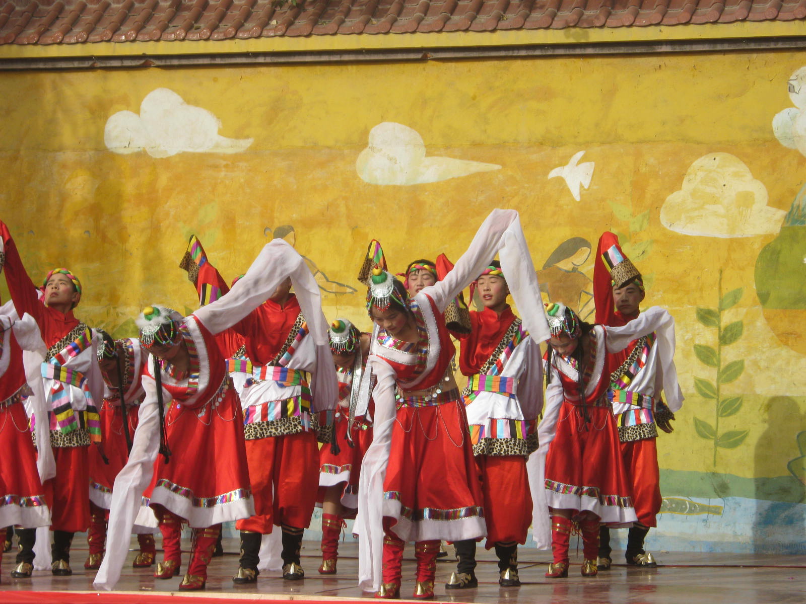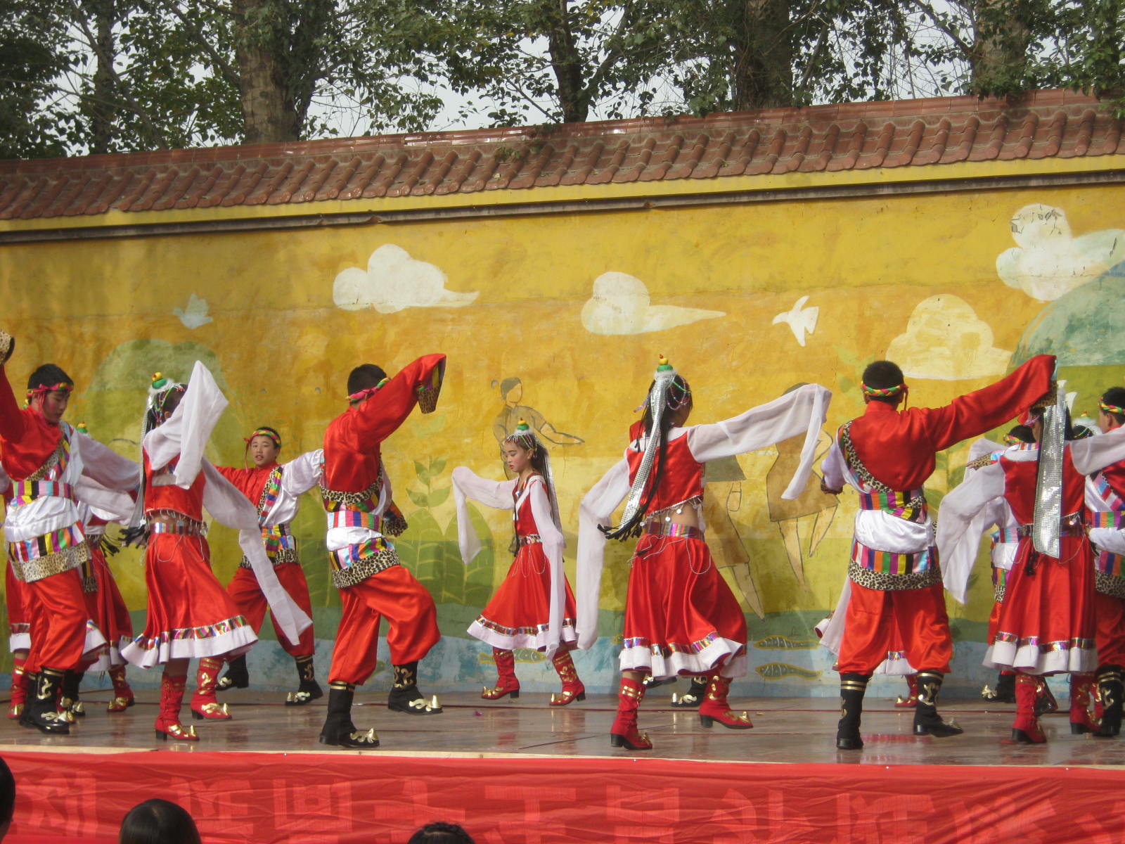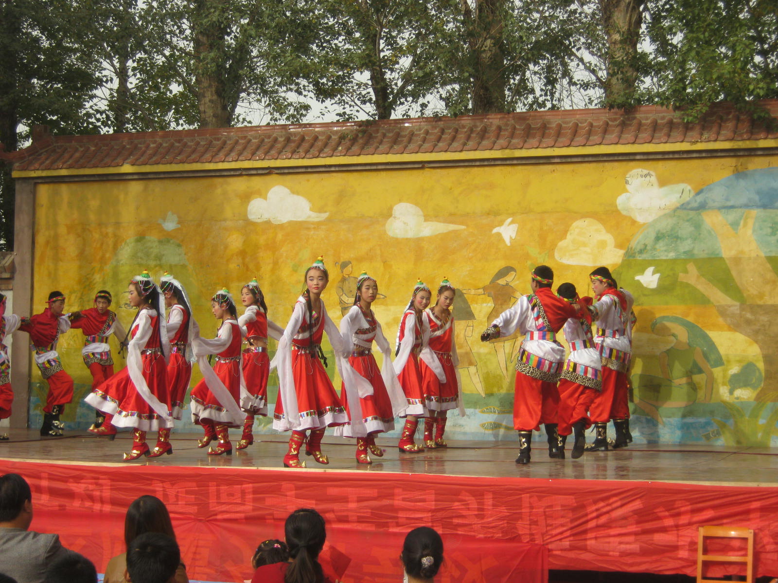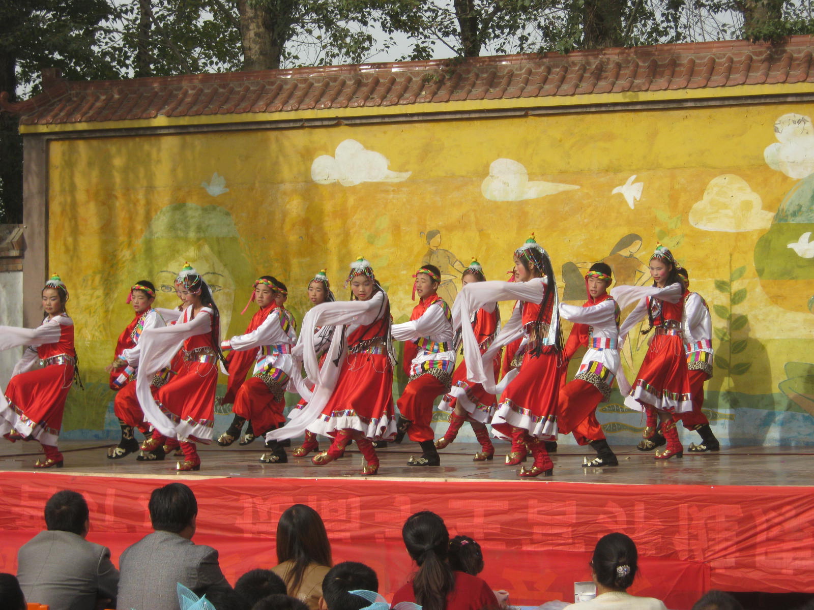 从圣洁的青藏高原,走来了一群美丽的藏族姑娘。她们整齐的舞姿,欢快的节奏,博得了全场的一片欢呼声。