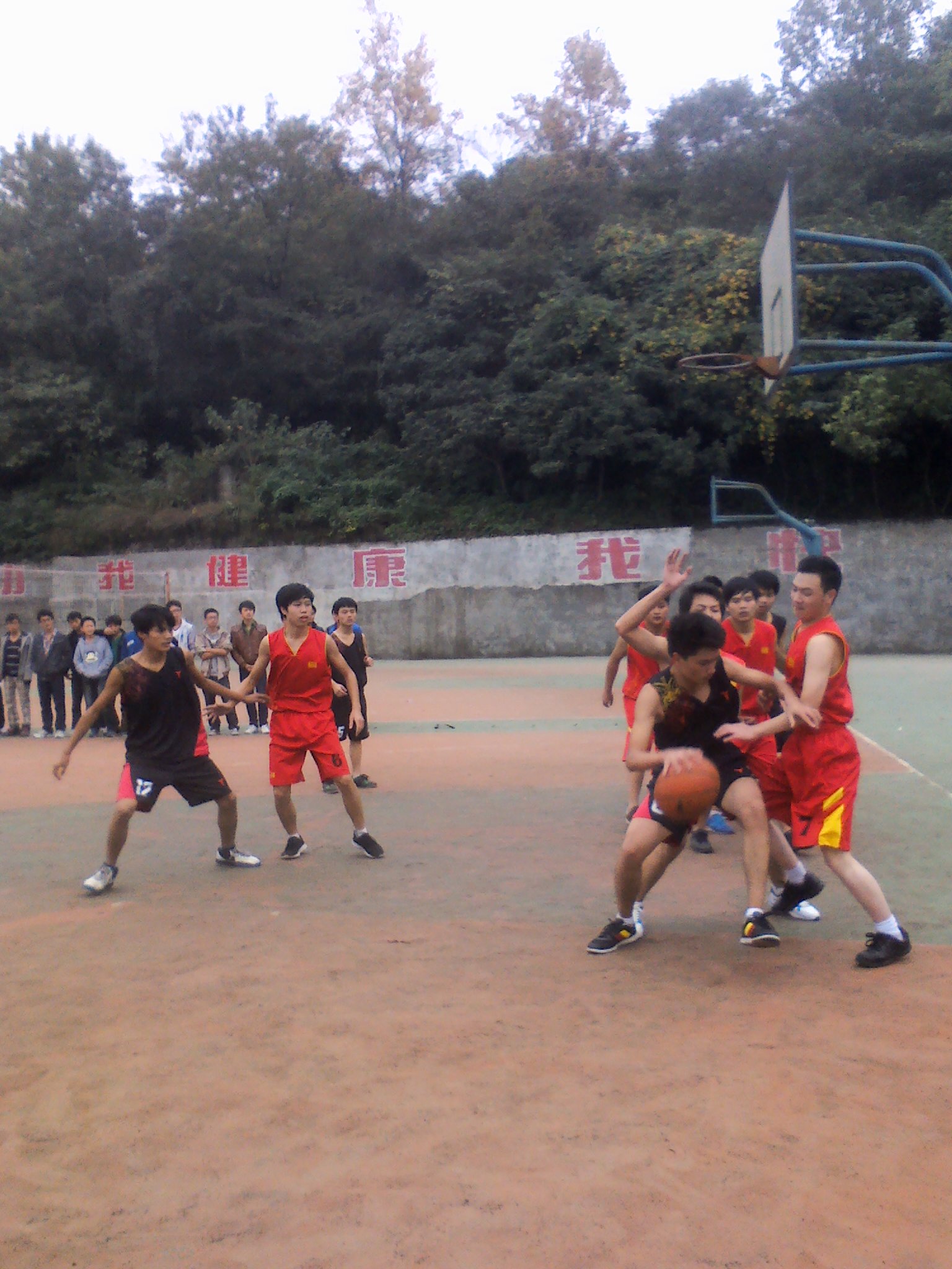 经过了十几分钟的比赛,赛情也越来越激烈。黑队的一位同学拍着准备往篮板上投球,可是被我们班红队给包围了,他没有投球的机会了。慢慢的球就被我们班的队伍给抢到手了,球到了我们班手里的时候我们就大声叫着:加油!加油!他们不负我们期望,球进了。我们高兴的拍手叫好!