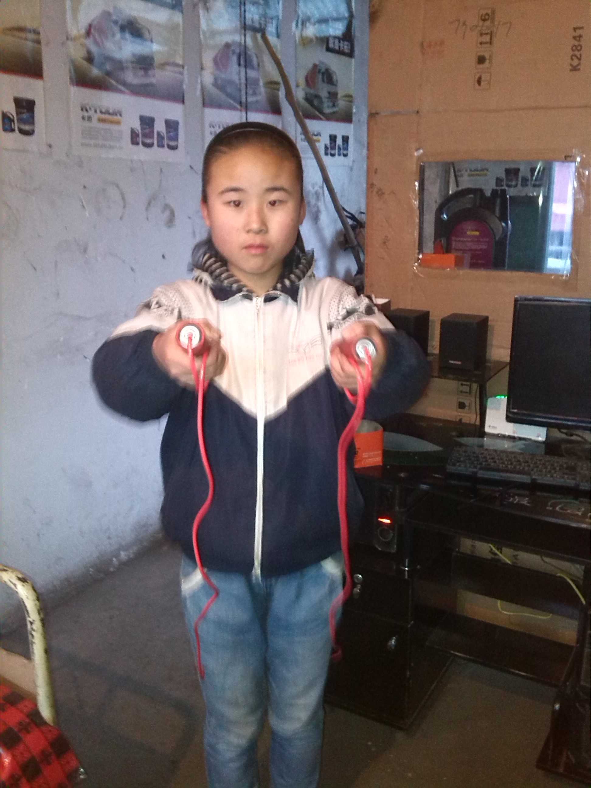 第一个是吴彩红;第二个是张明玉;第了三个是巩丽;第四个是我。我们就开始跳了。最后我跳一百个;吴彩虹跳了五十个;张明玉跳了二十四个;