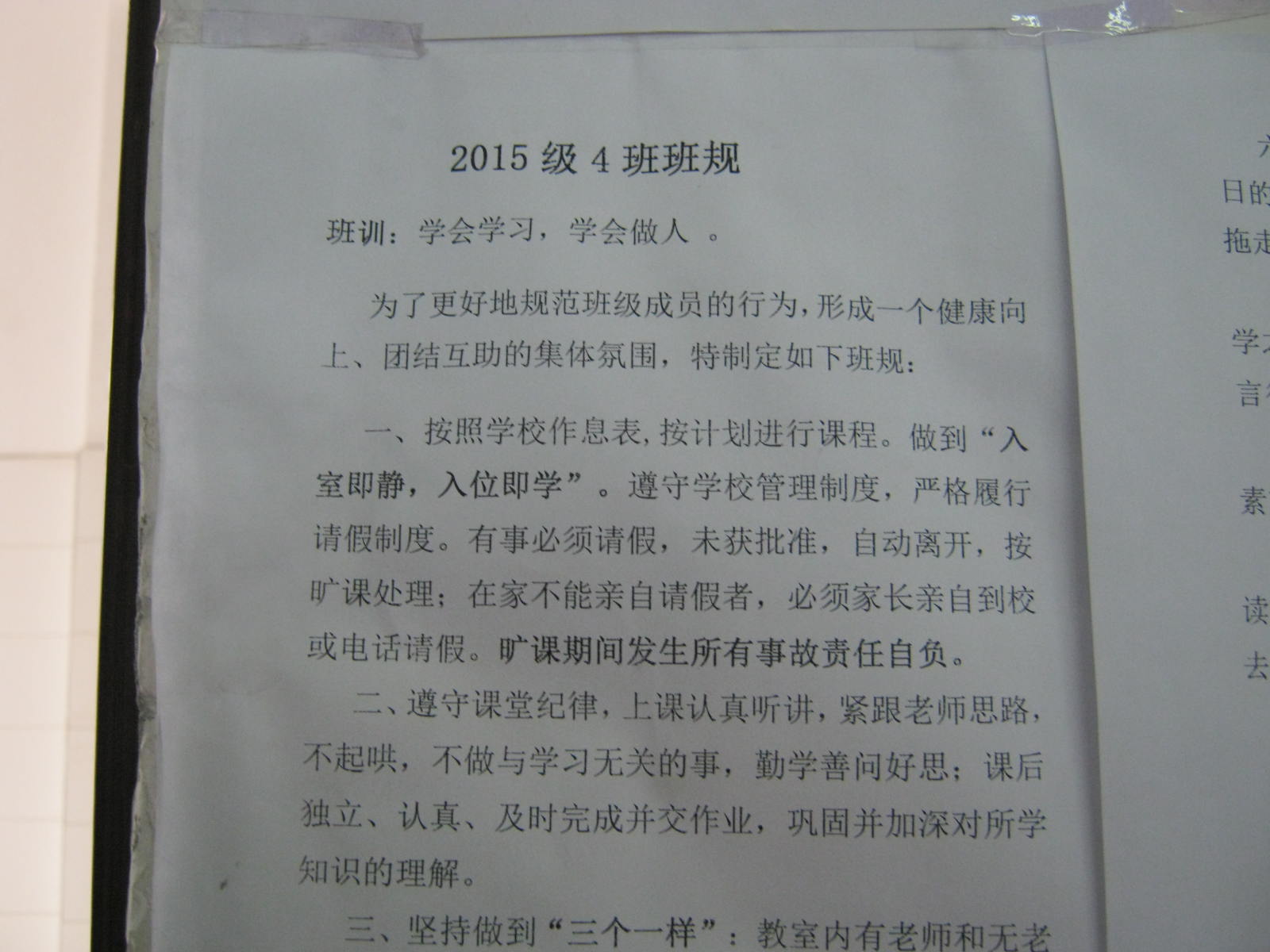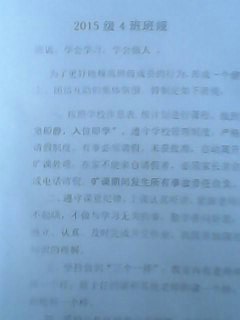 国有国法,家有家规,校有校规,自然,班就有班规。本班的班规可称一绝,把生活细节和学习要求都写在了上面,就连平时我们最不注意的与陌生人网聊也不例外。
