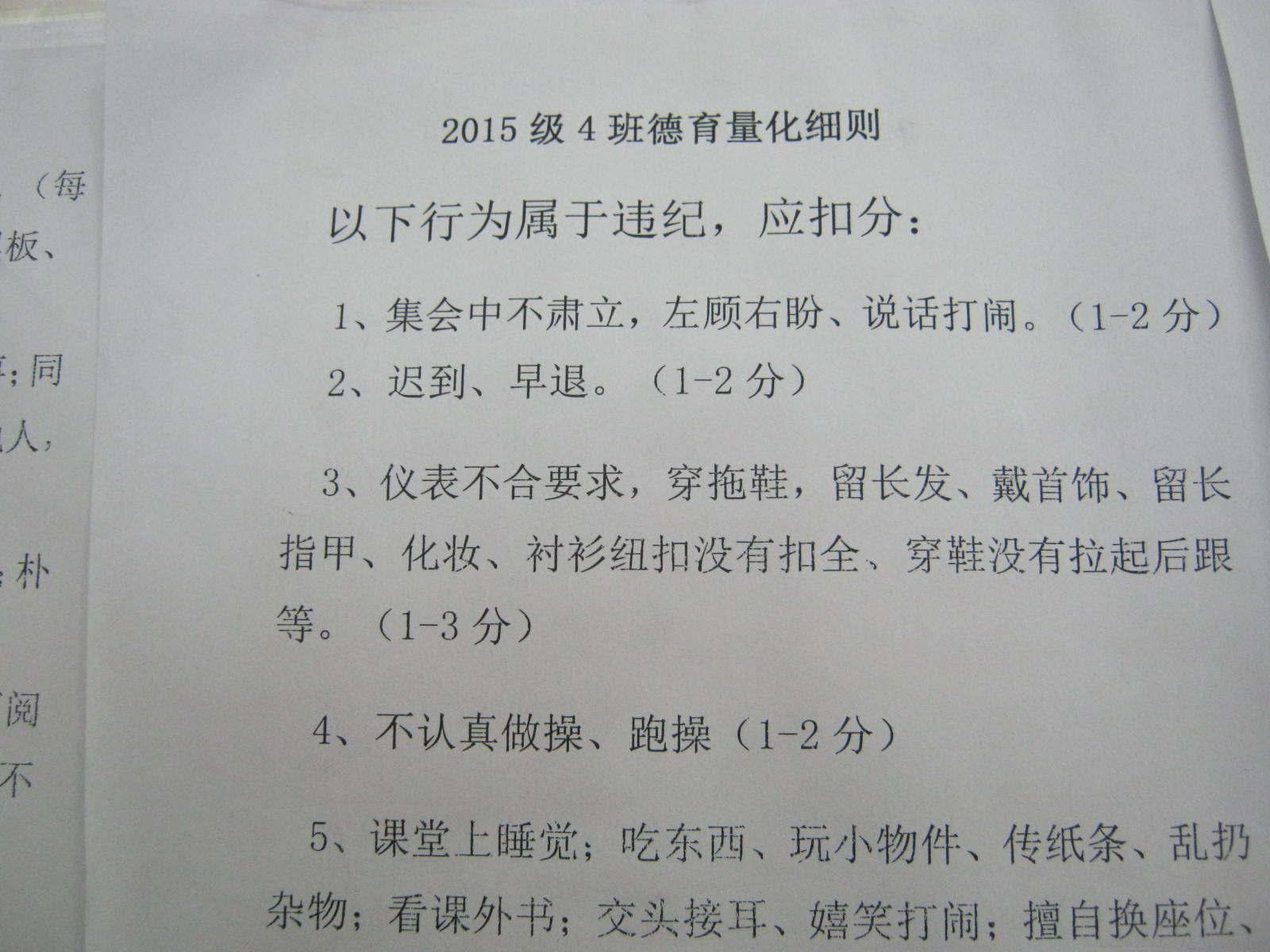 学习方面:当应该完成的背诵任务记录为较少,月考总成绩下降50名,月考成绩下降20分,要扣分。上课积极举手并被抽问,主动到老师处背诵的,问问题,要加分。