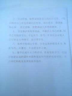 生活方面:仪表要符合中学生的要求,不能穿拖鞋,留长发,戴首饰,留长指甲,化妆等。也不能搞同学聚会,生日聚会等。