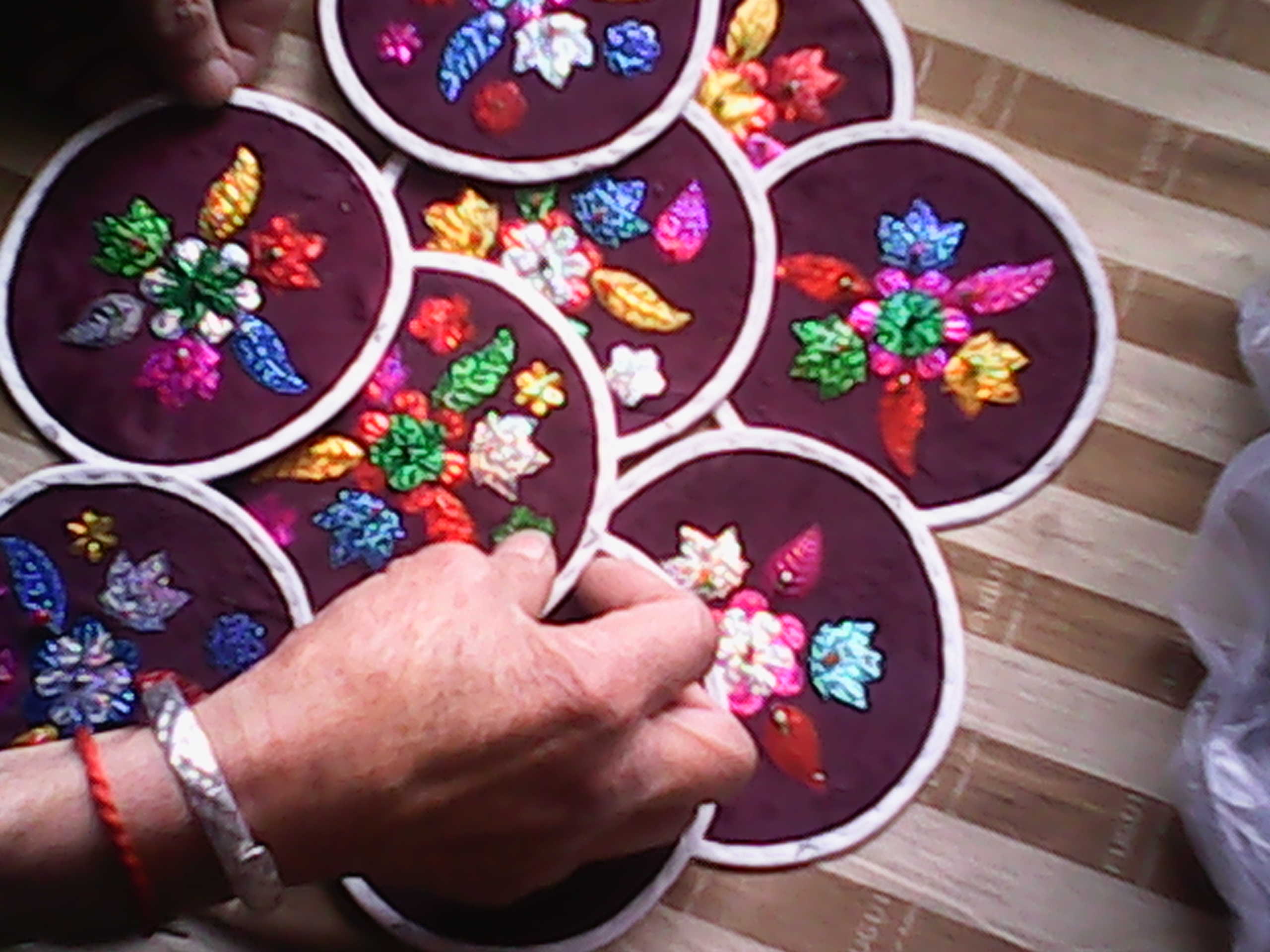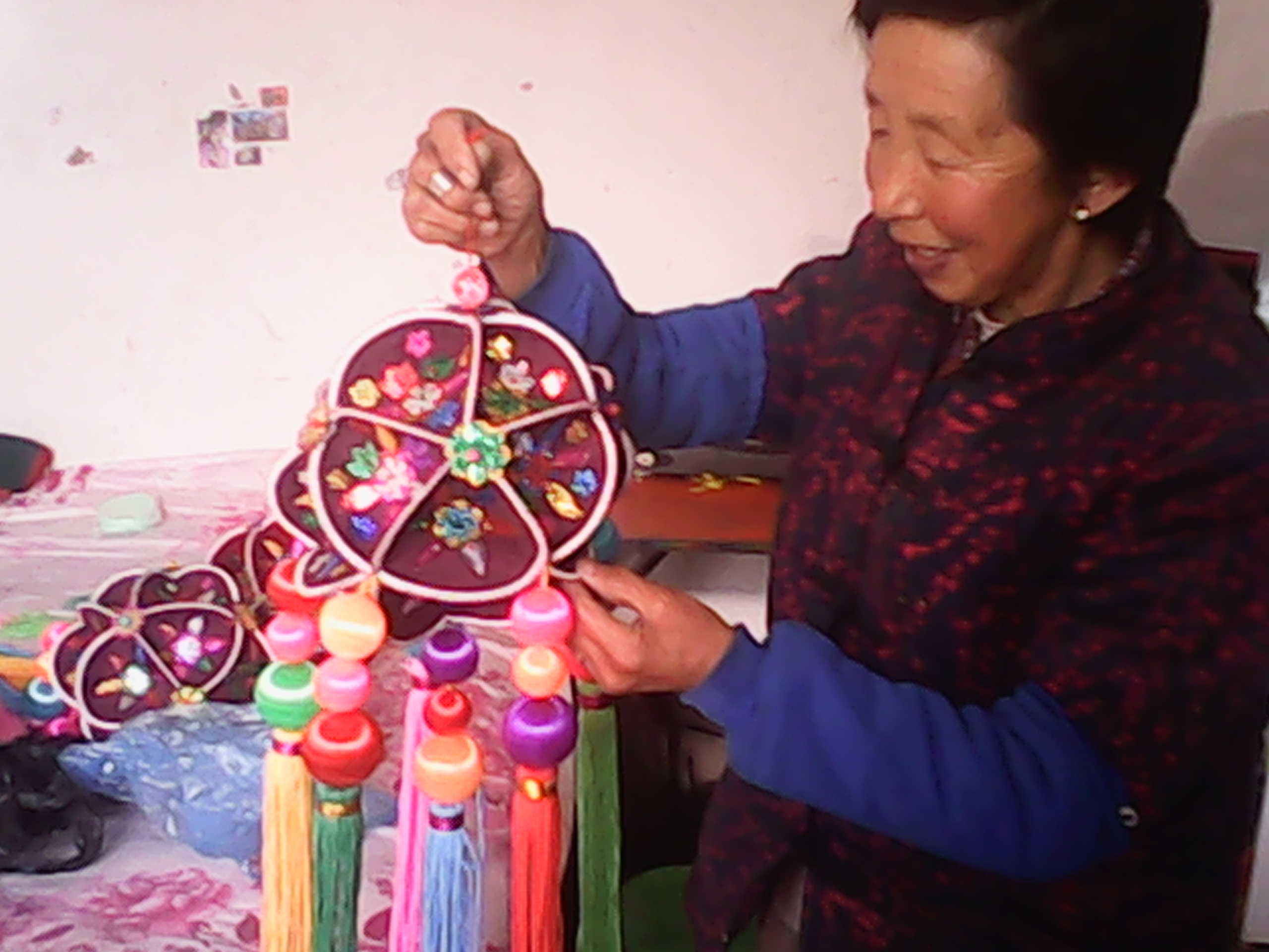 绣球是用各种各样的刺绣材料做成的,要做好一个绣球,靠的不是力气,是眼神 。奶奶已经是花甲之年,身体还算硬朗,但眼神已经大不如以前了,但她心里却老是想着,要赶紧做好几对绣球,送给我和姐姐当嫁妆。经常和左邻右舍的老奶奶们一起交流,好做出更票脸的绣球。