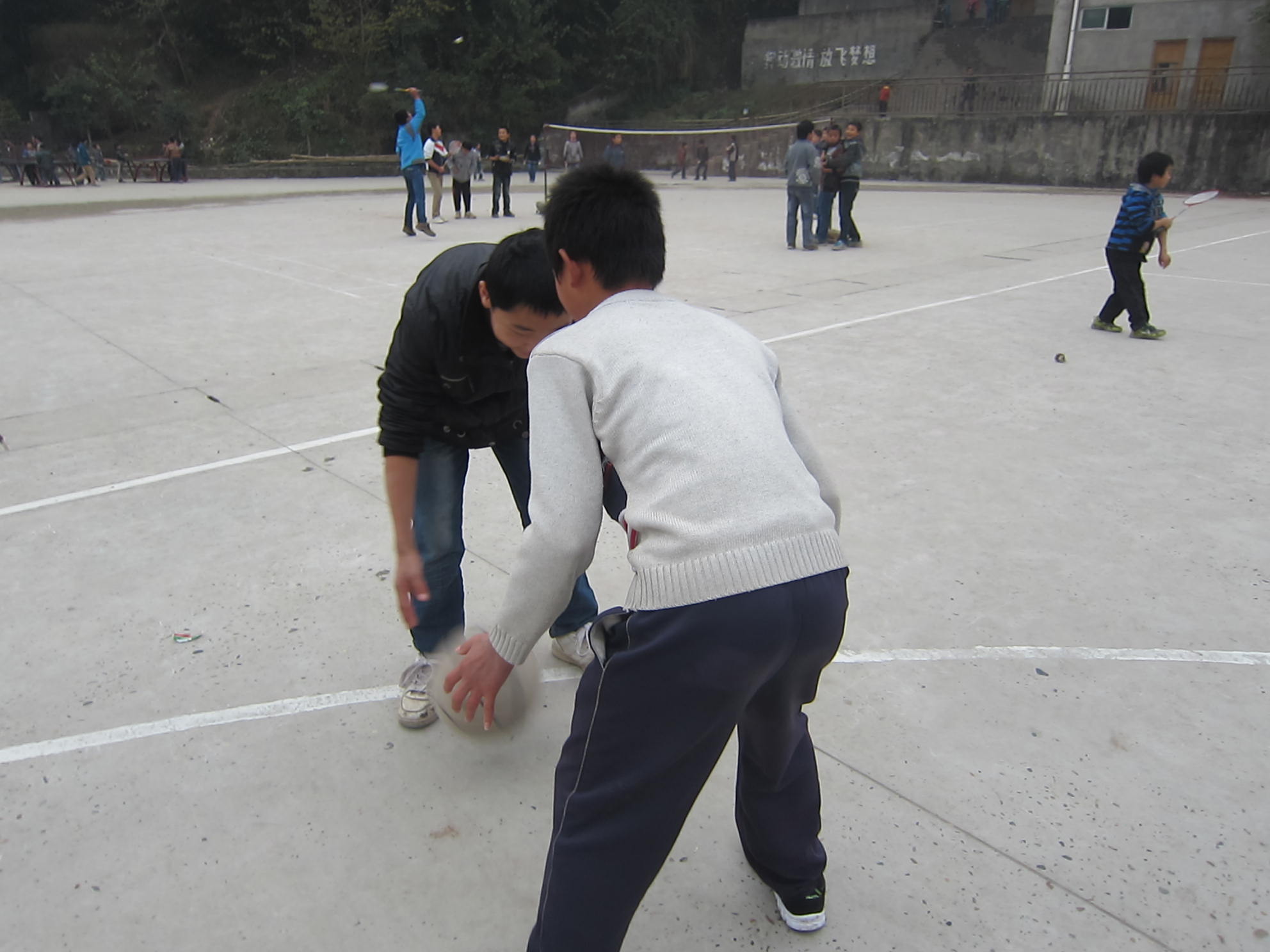 这就是我们班的篮球高手,我希望自己在与他交流中,能提高自己的球技。