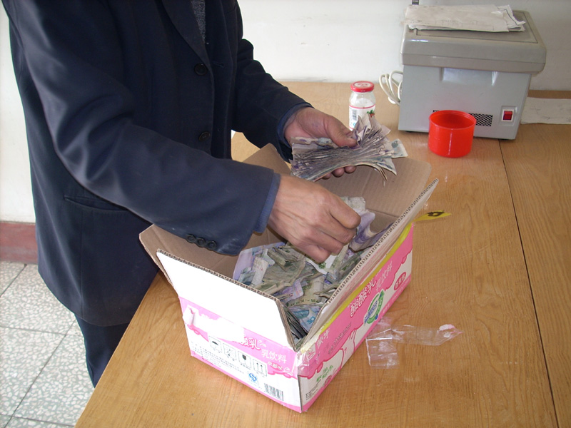 捐款完毕后,老师抱着捐款箱清点,一张张皱巴巴的钱带着我们的祝福,带着我们的愿望。这些钱将和老师的捐款一道送到灾区。钱不多,虽然是杯水车薪,可我们是中国人,也要尽一点绵薄之力。