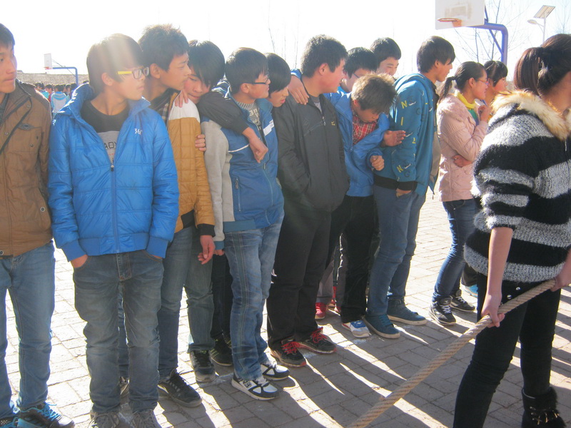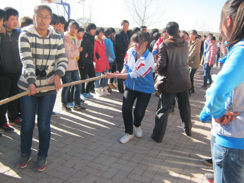 今天,轮到我们比赛了。比赛的规则是这样的:女生拔俩轮,男生拔俩轮。一共四个回合,一轮下来换场地,赢的班明日进入决赛。