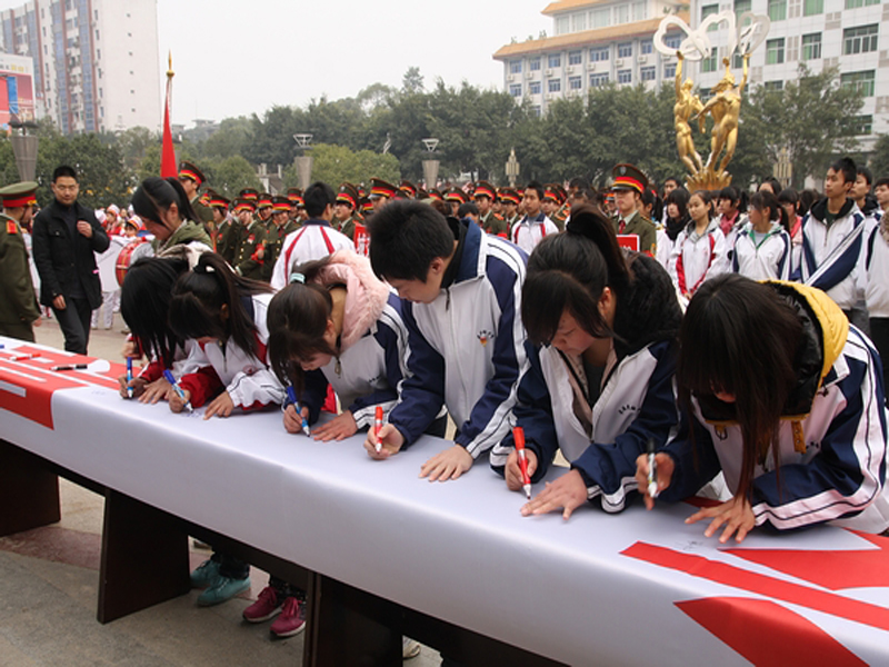 班主任让我们第二天穿上校服,我们并不知道要去干什么,当我们上完早自习后,班主任让我们到二操场集合,我们班,还有其他的几个班,扛着旗帜就出发了,在到同心广场的路上,我们知道了,我们将参加"学雷锋精神,做文明苍溪人"万人宣誓签字活动。当我来到同心广场的时候,其他的学校代表班也到了,还有其他的群众人员,整个同心广场几乎都站满了人,都是来参加"学雷锋精神,做文明苍溪人"万人宣誓签字活动。