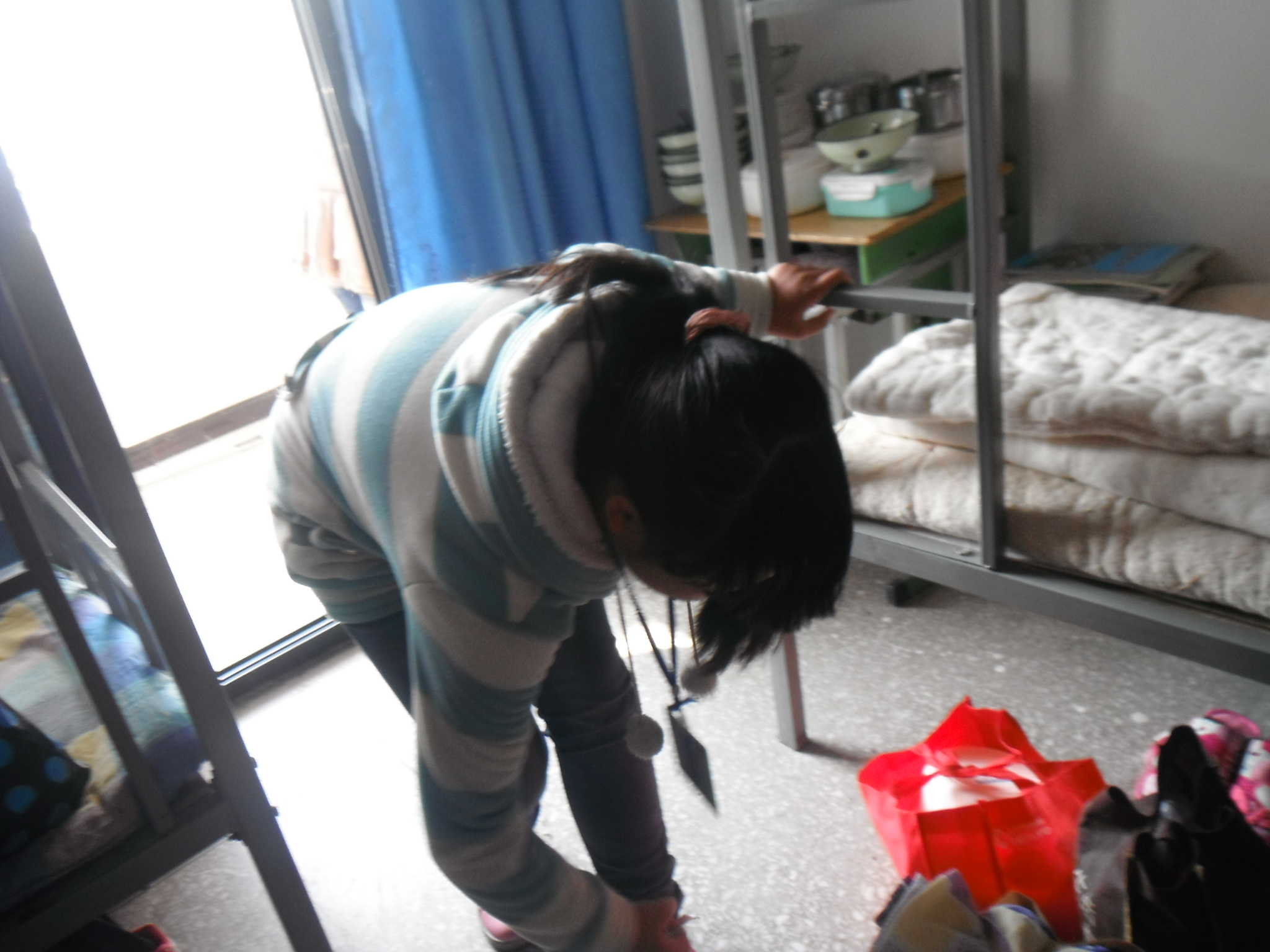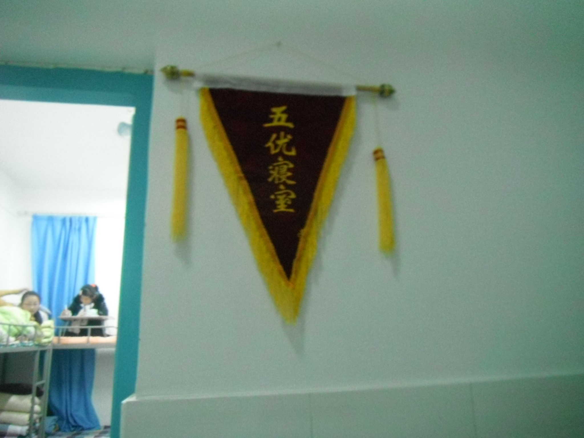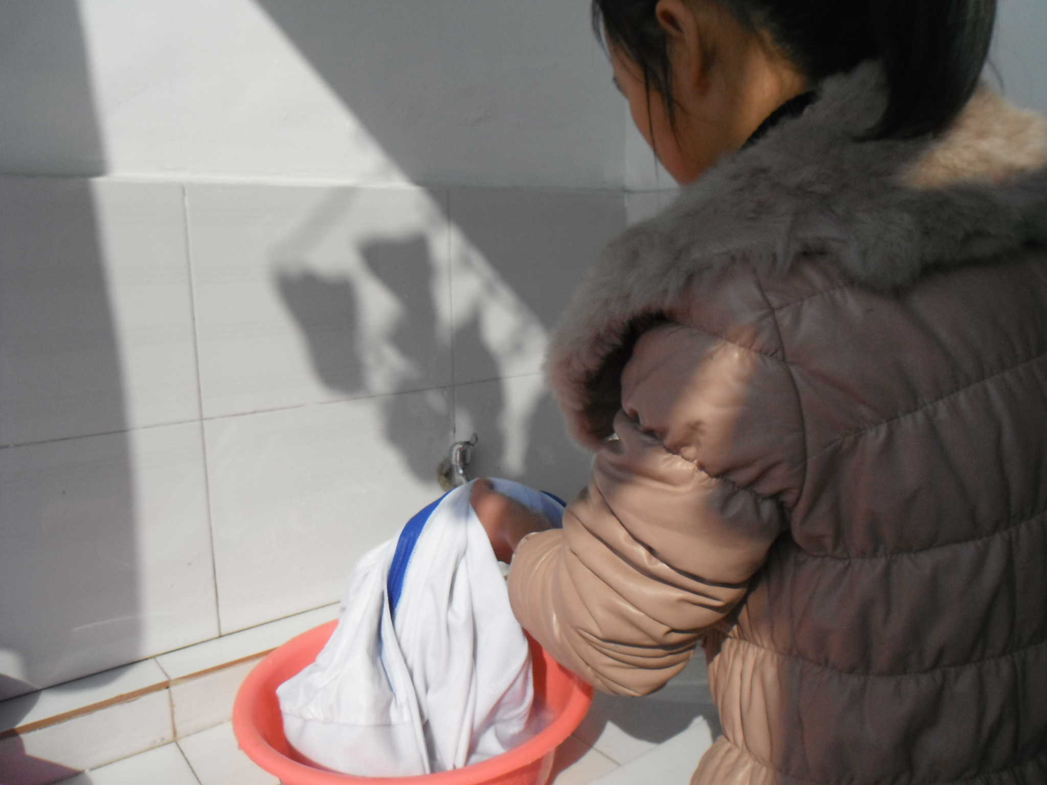 我们学校住校生寝室是08年地震之后重建的,它有一个好听的名字叫坤元苑。今天下午上完两节课后就要放学回家,所以同学们一个个都收拾好行李,有的乘中午时间就把校服也洗干净晾起来,等下周一的时候就可以穿了。