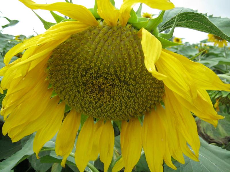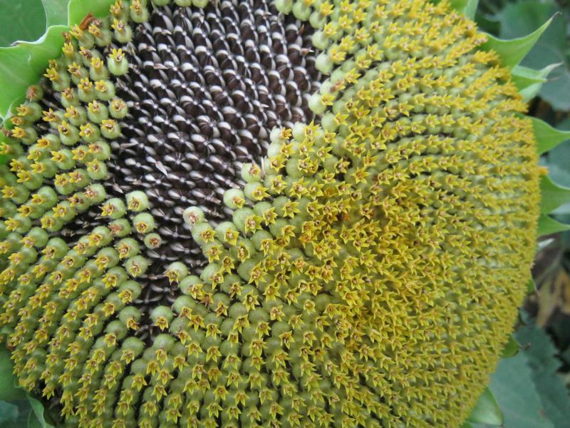 秋天来临,在这收获的季节里,向日葵由绿变黄,花盘外的花瓣也凋谢了。但是花盘里那些数不清的花蕊下面却结出了饱满的果实——葵花籽儿。这时,向日葵谦虚地低下了头,好像在向人们暗示:该收获了。