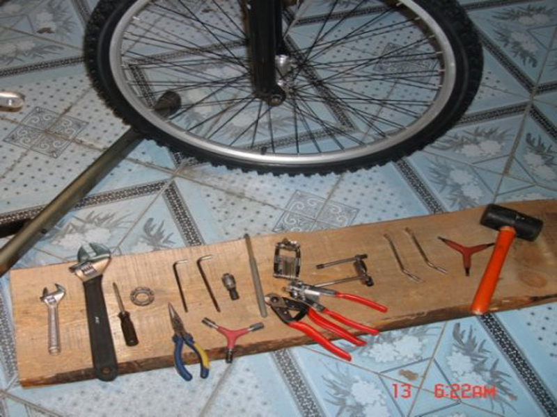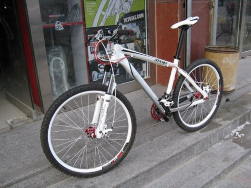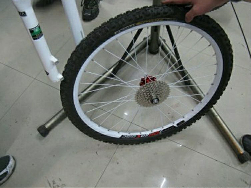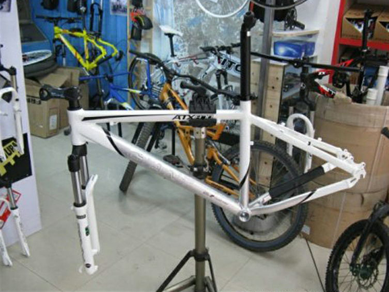 所有的准备工作完成后,组装车的师傅把自行车的龙头安装在车架上,固定好螺丝后,就有去拿自行车的前轮胎了。将车轮安在了用来固定车轮的前叉上,车轮的两边用螺丝将其固定好。自行车前面龙头基本算完成了,但是后面还是空的,没有车轮,没有链条…….接下来,组装车的师傅拿来车后面的一系列零件,刹车、链盘、螺丝、支架等,放在一边,由于车轮和车轮上的链盘出厂的时候就已经安装在车轮上面,所以没费什么力气把后面的车轮安在平叉上了,同时把链条也安在上面。脚踏板也一遍安好了,最后就是刹车和变速器了的安装了,经过20几分钟的安装,一辆山地自行车总算组装完成了,这样就可以买了。