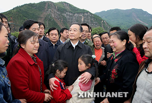 温爷爷是那么平易近人,那么和蔼可亲!他把人民的孩子抱在怀里,鼓励着大家以后一定会重建家园,而且会把家园建设得更加美好。