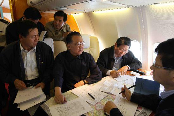四川汶川发生8.0级强烈地震后,党中央、国务院总理温家宝爷爷在第一时间赶赴灾区。在飞机上,温爷爷和各位地震专家、领导们一起研究分析四川汶川的灾情,召开了四川地震会议。温爷爷依旧穿着以往几十年代的黑色夹克,朴素而又不失大体!温爷爷脸上挂着一丝哀愁,为了四川的人民……