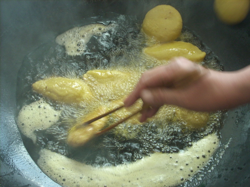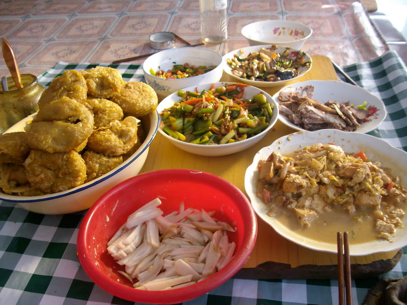 哇!我的口水差点流出来,因为案桌上摆着油炸糕,家常豆腐,猪肉粉条,红烧鱼肉。没有一个是我不喜欢吃的。我正想偷一个糕尝一口。却被爸爸发现了,只好忍者口水被赶出厨房。