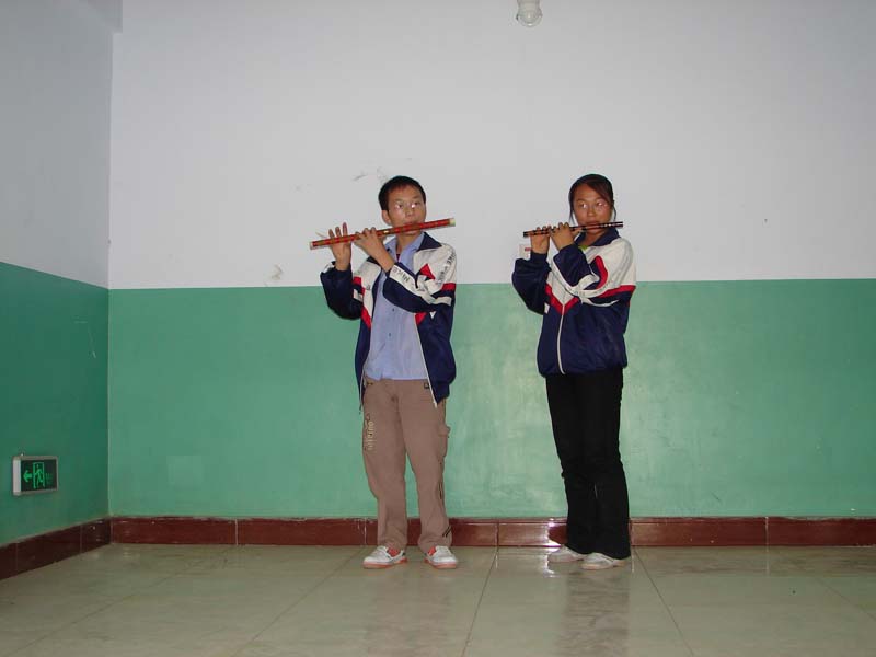 眼下这两位同学正在专心的演奏着《宣和中学校歌》整个走廊里回荡者幽幽的笛声。听着这抑扬顿挫的笛声,看着他们自信满满的神情。眼前仿佛浮现了宣和中学的景象。