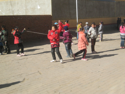 啊,哪是我们班的女同学在跳皮筋,她们像在跳舞,个个像风中的蝴蝶,跳的漂亮极了。我们班的男同学在一边给他们鼓掌加油。你看我班的小胖子孙小明也和女生玩,被女生给推到一边,捂着脸,是不是在哭鼻子呢?