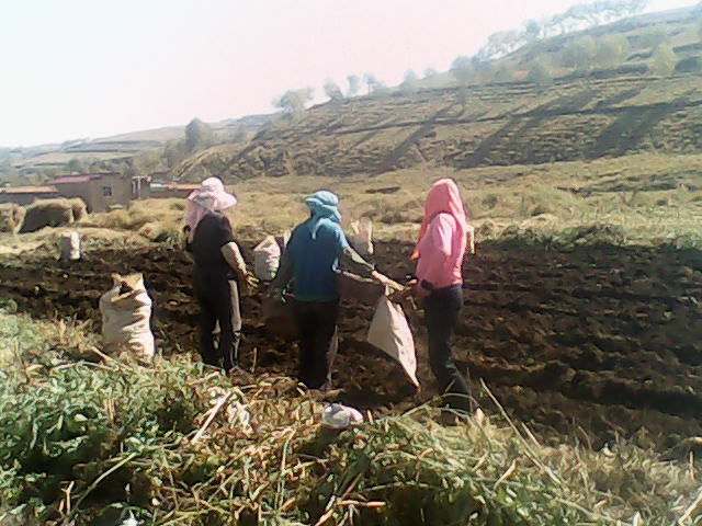 在我们大家共同的努力之下,一袋袋洋芋就像守护这片土地的卫士一样,屹立在那里。休息的时候望着蓝蓝的天空,呼吸着新鲜的空气,想象着未来的自己。才发现:任何事物都愿意被美化,唯独自然不需要。而这就是自然!
