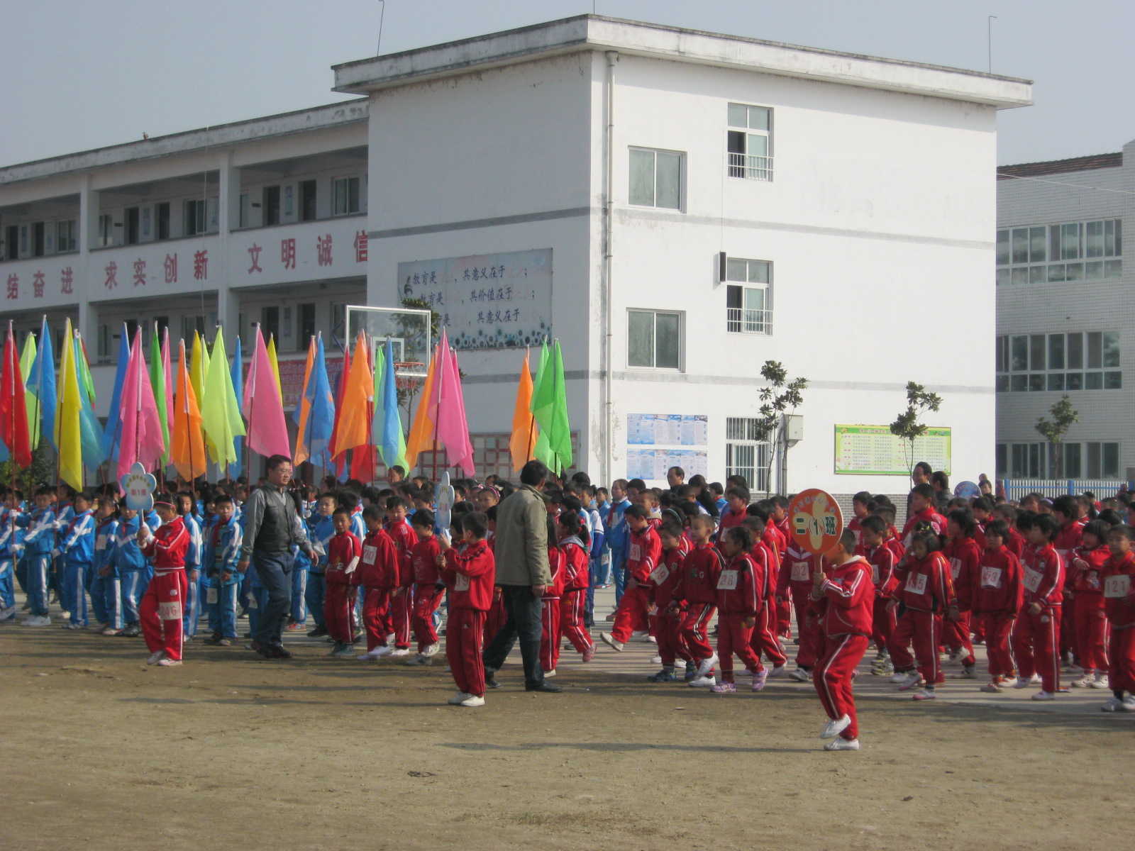 我们每个班都站成了整齐的方队,大家穿着统一颜色的运动服。站的可笔直了。当运动员进行曲响起来的时候,听着这激动人心的旋律。我的心砰砰砰的直跳。