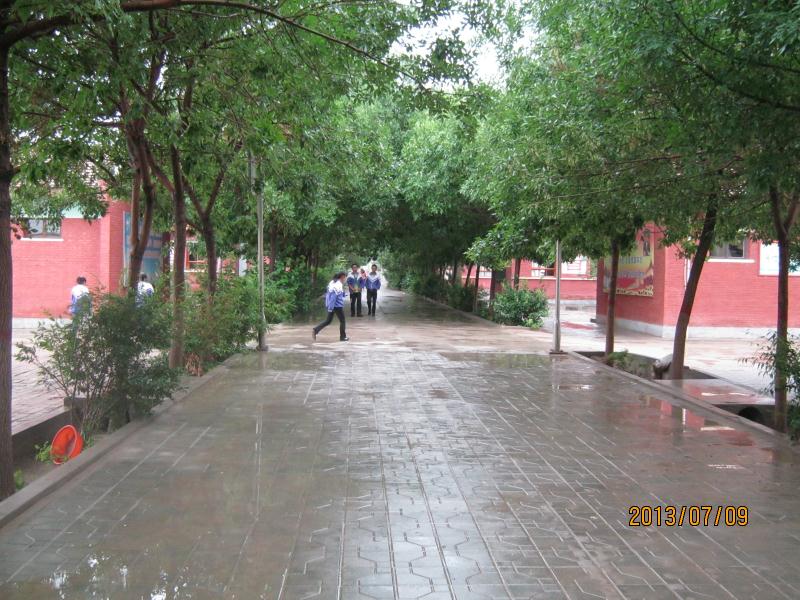 看!这就是我们的校园、一个绿色的校园、一个充满欢乐的校园、一个美丽的校园。我们在这里学习、生活、快乐地成长。走进学校大门,首先映入眼帘的是一条林荫路,马路两旁葱郁的白蜡树把炎热的阳光遮住了,我们可以在这里自由地乘凉、漫步。