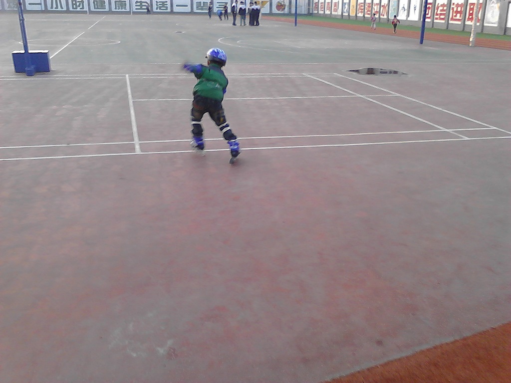 我套好了滑冰鞋后,扶着栏杆慢慢地站了起来,拖着犹如千斤重的步子艰难的向前走去。一侧头,只见他们""嗖嗖嗖""的从我身旁飞过去。看来滑冰也不是一件容易的事,我开始尝试着不扶栏杆,慢慢地向前滑动。可是我的心里却像十五个吊水桶-----七上八下。我不断地为自己打气:加油!加油!我一定可以学会的!我鼓足了勇气,开始慢慢的向前奔跑起来。