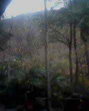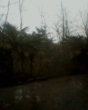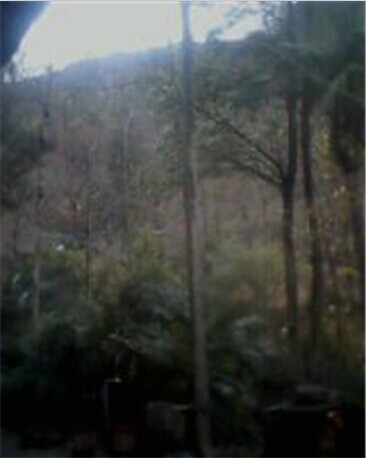 门前有几棵树,名字我也不知道,它的树皮上是树丝形成的,可以造草雨衣,也可以做草帽,它会结一种蓝茵茵带灰的果子,我经常把它摘下来玩,可现在没有了。
