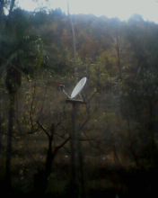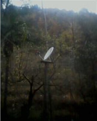 我家房子前有一个小小的电视锅盖子,是一个白色的,高频头对着它,它就是电视的信号。大风吹,电视信号不好,电视就没法看,前面是几棵大树护着它,真像几个大巨人。