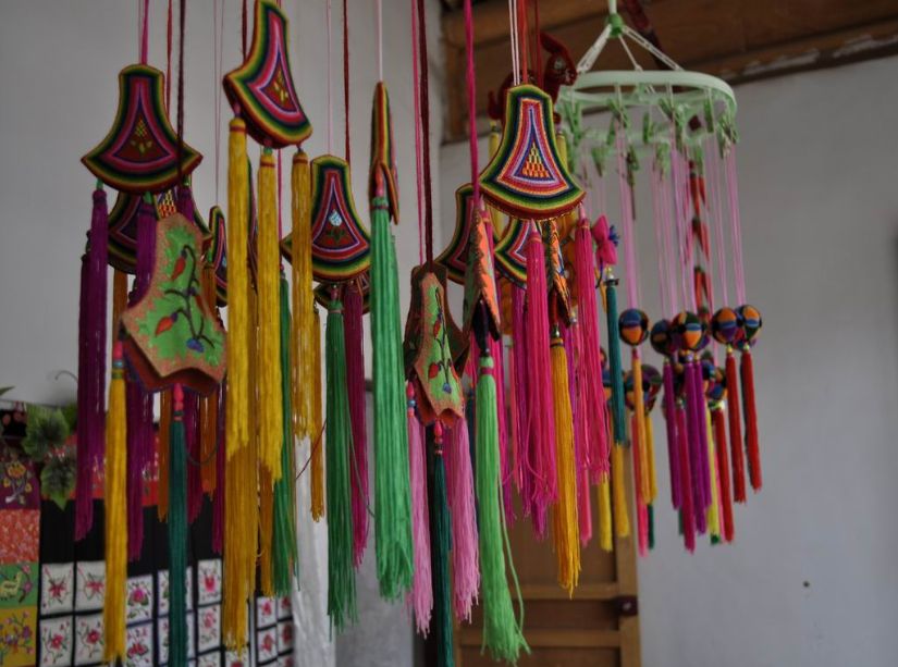 土族民间刺绣是青海最具特色的民间手工艺品之一,其刺绣品与土族乡民的生活息息相关,如服饰刺绣有衣领、衣袖、绣花口袋、围肚、大腰带、袜跟、绣鞋等;生活用品有绣花枕头、钱搭、烟袋、针扎、香包等;宗教方面有刺绣、堆绣佛像及喇嘛头饰、用具等。