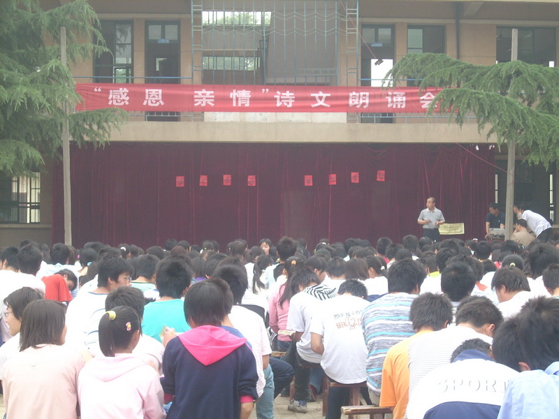 5月27日上午,在校语文组和校团委的组织下,一、二年级的诗歌朗诵大赛在学校礼堂隆重举行, 这次朗诵大赛的主题是"感恩 亲情".各班级参赛的同学都提前做好了充分准备.