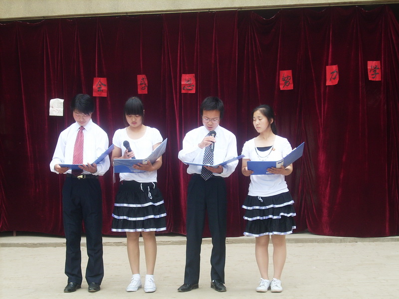 在优美的音乐声中,选手们用出色的表现展示了当代中学生的风采,表达了对中国诗歌文化的热爱。《母亲》表达了作者对母亲的崇高敬意;《我长大了,父亲的背弯了》表达了作者对父亲的深深的感激之情;另外,老师朗诵的《海燕》让人联想到社会主义革命的风起云涌,海燕那种坚强不屈的精神,给人以深刻启迪.许多选手还用自创的精致小诗表达了对父母,老师的感激之情.![]()