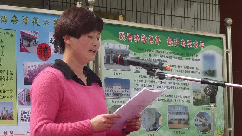 站在中间的那位士生土长的教师就是我当时的班主任,她长的并不是美若天仙,穿的并不是锦衣绸缎,但他们却有着一颗金子般的心—时时刻刻都爱着每一位学生,尽管当时天气是多么的炎热,加油这两个字永远在老师的心中,加油加油,为七一班争得第一,看着老师汗流浃背,我们全班同学看在眼里,急在心里,内心感动万分。