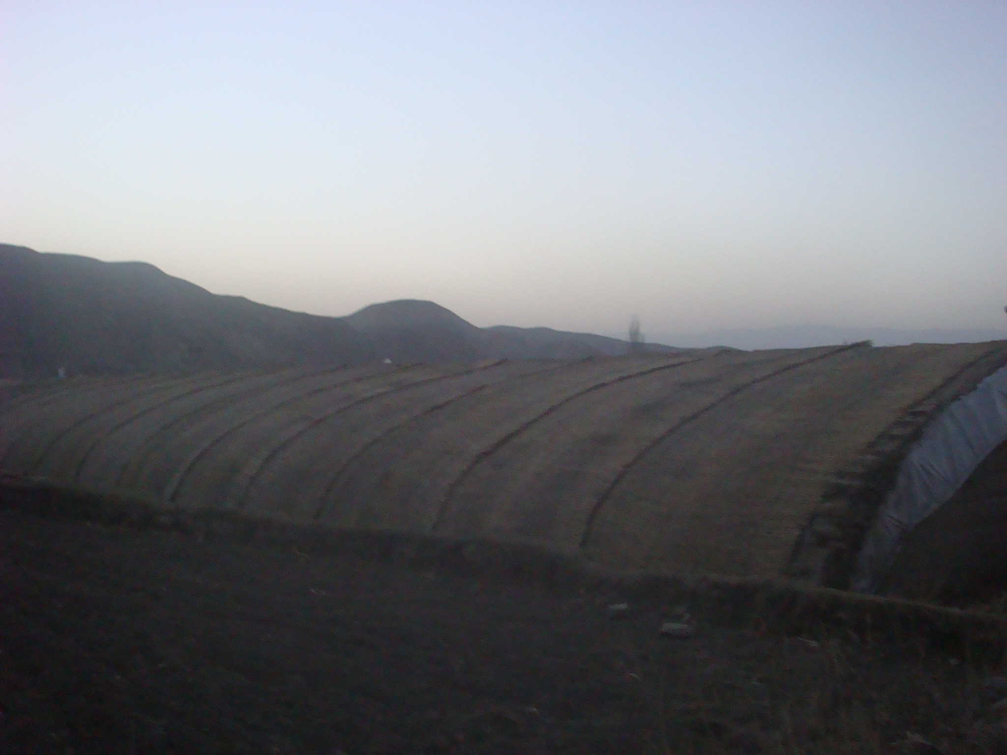 日光温室总体像一个圆柱体的四分之一,他是白铁丝竹子等构成的,他的温度有时达到30度,有时只有七八度,棚中跟棚外的温度也有很大的差异,比如上午棚中的温度可以达到30度,而棚外只有区区几度,日光温室需要每天早上拉起草帘子,以便阳光射进棚中,提高棚内温度,上午要打开放风口,为了减小棚内的温度,避免温度太高,烧坏植物,到了下午再盖上草帘子,以保持棚中的温度,以免冻死植物。