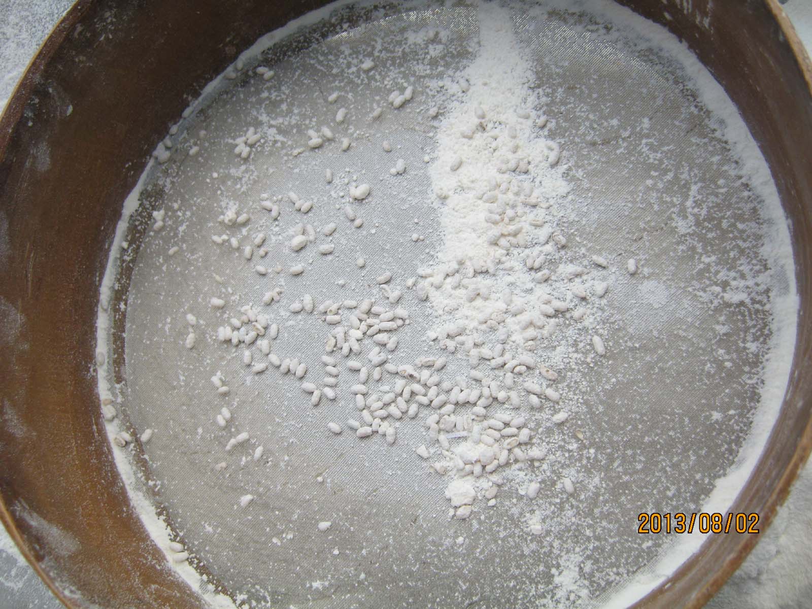 今天干了件有意义的事儿,把白面里的虫子筛了出来。老家话叫"旦面",用到的工具叫"箩子",查了半天也不知道"箩"怎么写,就用箩框的"箩"吧。箩面是什么意思呢?就是用"箩子"把白面里的杂质去掉。