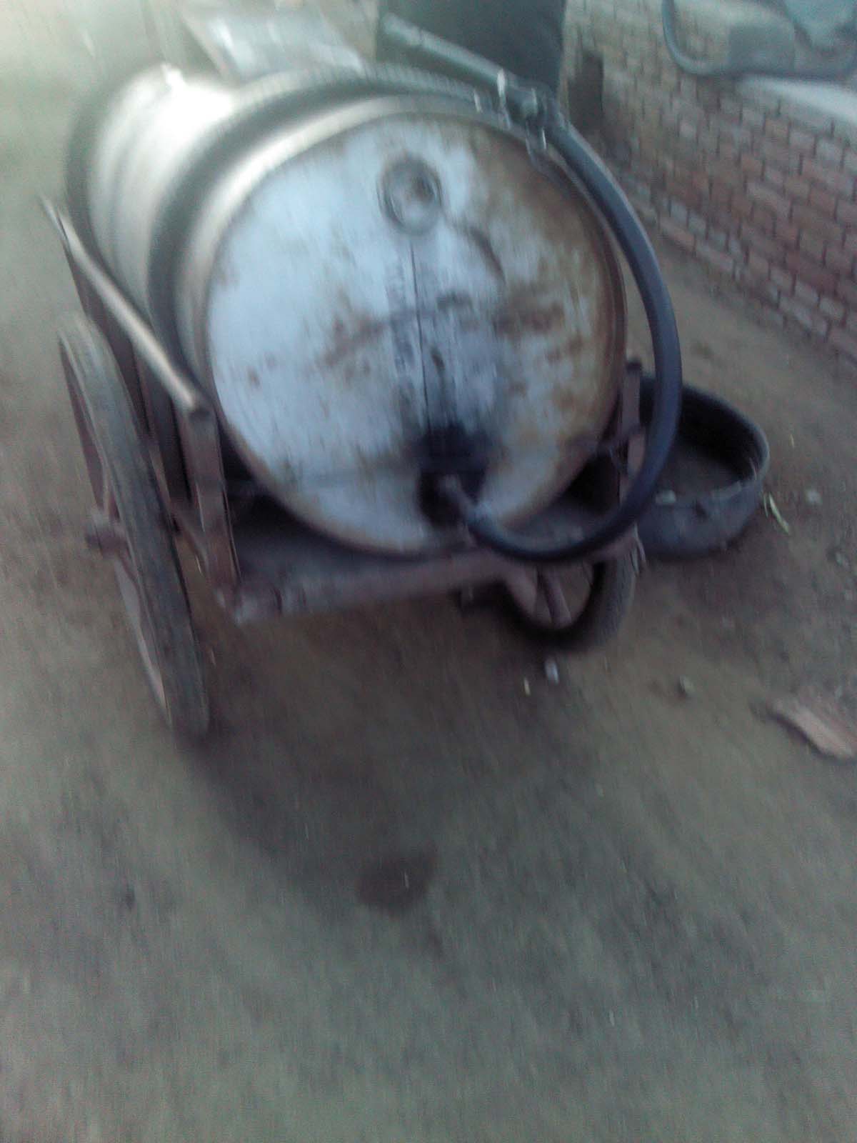 自家没有井的也在想着办法,他们把一个大油桶改装成一个大大的水桶,放在小推车上。去有井的人家去拉水,拉一桶两块钱。这一大桶可以装好多好多水,一个星期也用不完。