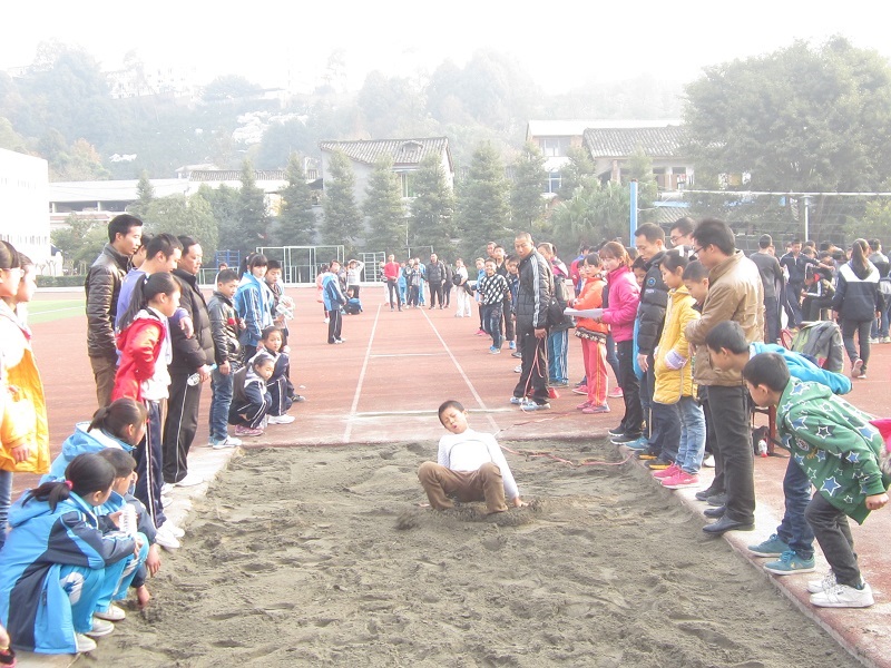 休息还不到五分钟,广播里又在念我的名字,下个比赛项目——急性跳远,我回头看了看和我比赛的同学,他们也刚参加了800米的比赛,都很疲惫,有的也想放弃比赛了。 经过一番思想斗争,我还是选择迎难而上,虽然第一跳成绩不怎么样,但想想旁边的同学都满怀期待的为我加油打气,不知怎么的,第二跳时,我感觉我的双腿突然有了力量,起跑、加速、冲刺、踏板,最后纵身一跳,我还没站起来,就听同学们一阵欢呼声,"哇!我得了第一名!"我既兴奋又激动,我简直不敢相信,我竟然也能冲破困难,取得胜利,我知道这和同学们的鼓励与支持是密不可分的,我回头望望陪我训练的李校(我们的体育老师),这次的成功多亏他了。