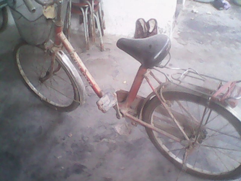 那辆车已有好几十年了,那是我爸爸小时候爷爷给爸爸买的,爸爸一直都是骑着它上学的,所以到现在几年没有骑了,也舍不得丢,车上还有个小的白色车牌,爸爸说这是这辆车专属的车牌,代表了整辆车一样,不能丢,到现在那个车牌只剩下一半了,但是仍然在车上面挂着。