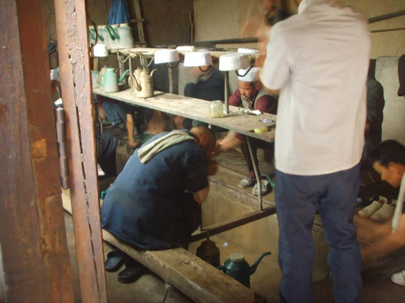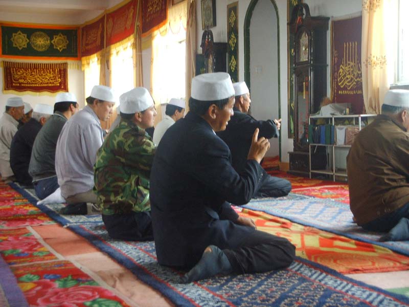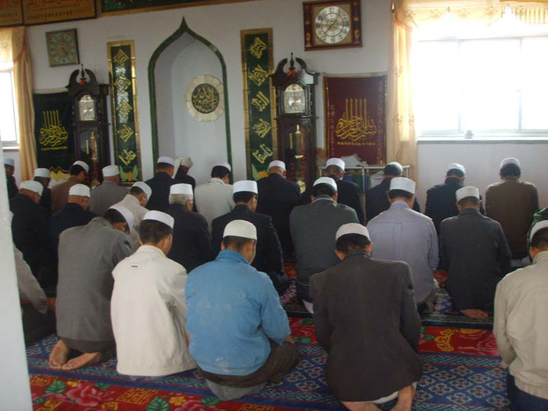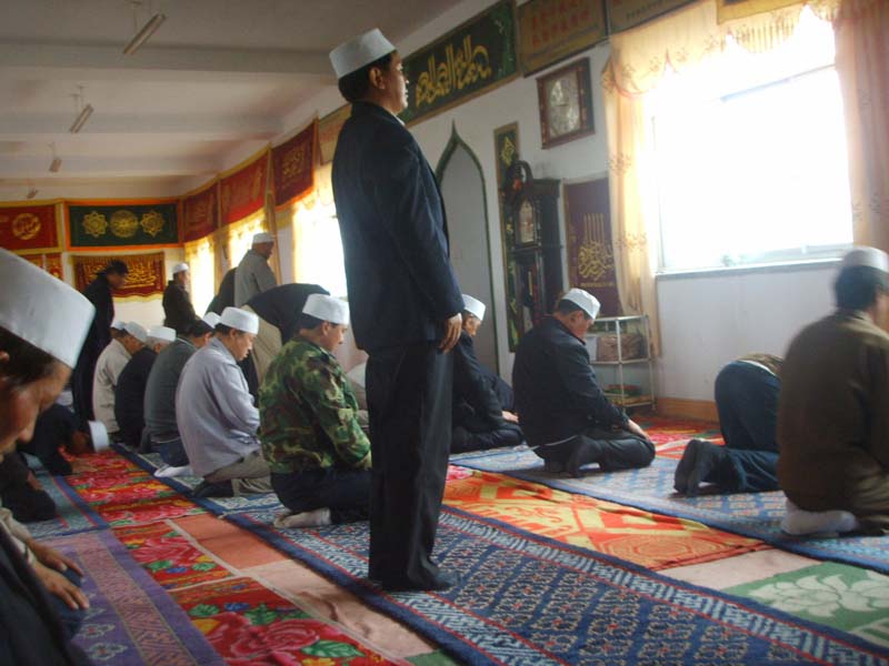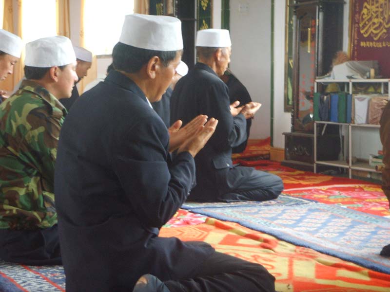 礼拜后,大家都会跪拜一会儿,向真主忏悔改邪归正,实心怕主,自知其罪,经过一会的讨白后,你仿佛肩上轻松了许多.下来,人们便和阿訇握手以表示对阿訇的尊敬和真心实意的做好一名回族人的诚心与决心.