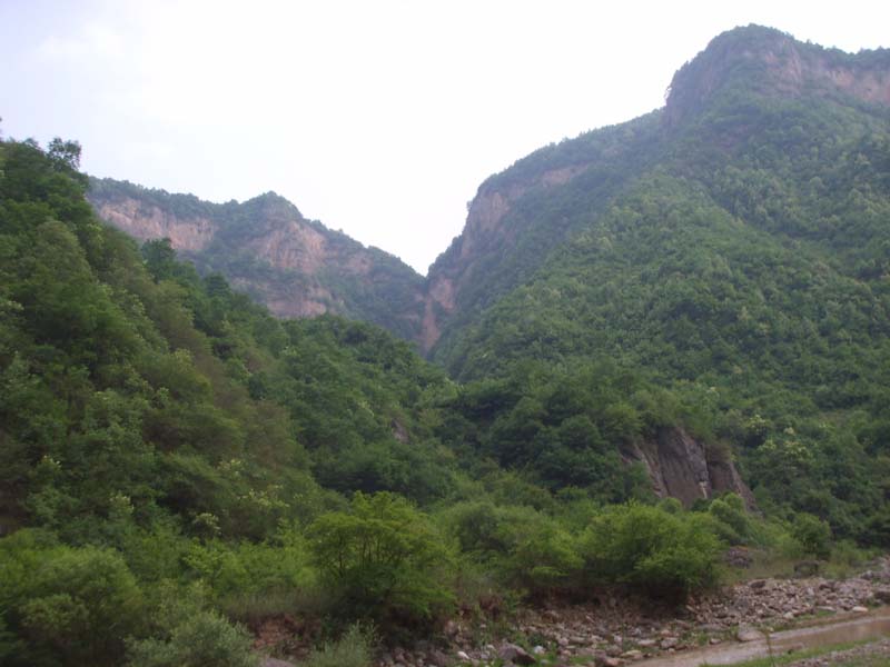 到了弹筝峡,犹如到了人间仙境一般。水特别汹涌。河边有一个特别大的石头,姐姐见了大叹一声"好大啊,咱们那都没有"。沿着河行,峰回路转,便到了龙头山,龙头山特别高险。登上去手可摘星辰,而且怪石嶙峋,特别险峻。走着走着,我们碰见了几位游客,看见他们口渴的样子,我便拿出水供他们喝,他们硬要给钱,我便收了。由于这里山水美,与世隔绝,所以很少有卖东西的。