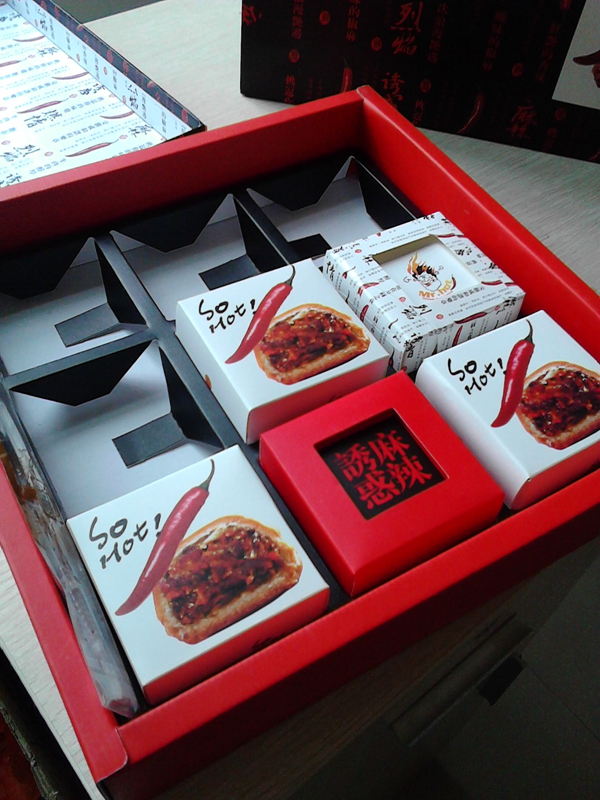 回家后我亟不可待地打开包装,想看看这"麻辣诱惑"是怎么个诱人法。 嗯,看这包装真精致啊,剥了一层又一层,除了诱惑人外还给人一种神秘感。 我现在已经闻到了从包装盒里散发出是阵阵诱人香味。好想吃。