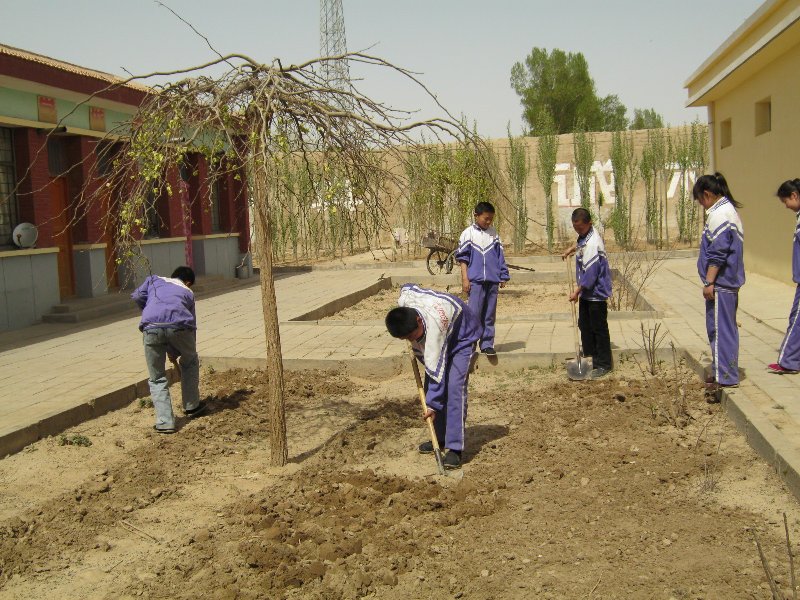为了让我们的校园更加美丽,我们开展了美化校园的耕作活动。男生力气大当然是拿起铁锹翻地,女生心思细腻自然负责"监督"男生,并且捡拾翻出的垃圾,从而为花草创造良好的生活环境。 真是"男女混合,干活不累。"我们很快掀起了美化校园的劳动高潮。