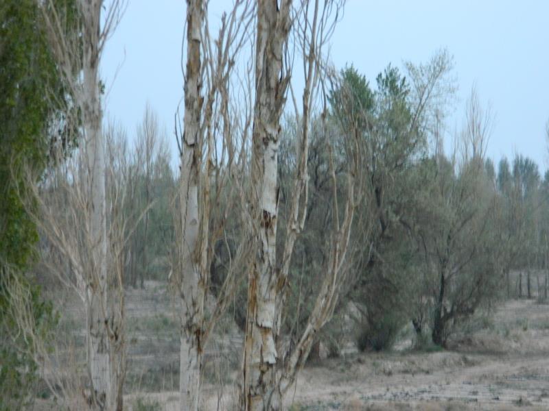 沙漠边沿的白杨树因为缺水而慢慢枯死,让人很难过,想想我们同学们的植树活动,一颗小树苗长成大树干是多么的不容易,但是,一棵棵大树干就这样干枯了,也不知道大人们是怎么想的。 我们要防止沙漠蔓延,要防止土地沙漠化,要保护植被,要美化我们的生活环境,就算要节水,也应该留下我们环境中已经是大树干的植被吧,昔日生长茂盛的小树林,今天却成了让人难过的枯树干啊!而我们每年还要植树,还要压沙,这究竟是谁犯下的错?