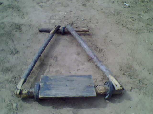 而今我也有了一辆自己的车,一辆用木头做的三轮车,我的车是我用了大半天时间制成的。他是由三根木棒,一块木板和三个轴承组合而成的。