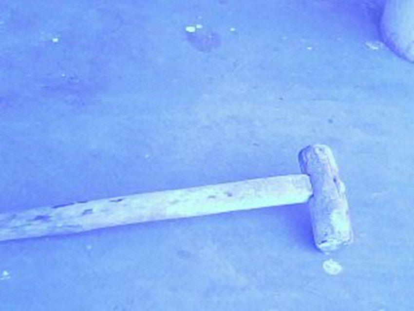 看!这是我家填炕用的工具,它叫做榔头,用来把燃料填入炕内,榔头旁边的那个小门叫做炕洞门,它是燃料的进口。当然,你也不用愁没有燃料,玉米棒子、树叶、煤沫等都可以作为燃料。