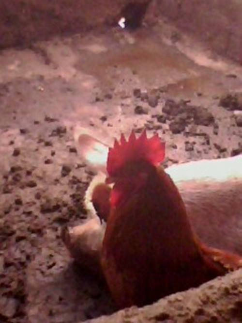 因为它,我都不敢去上厕所,因为那条上厕所的通道是它的地盘。当我走过时,我清楚地看见它斜眼瞪着我,然后猛地一转身,就跑过来啄我。幸亏我跑得快,不然就成了它的“刀下鬼”了!以后几次都是这样,于是我拿棒去吓唬它,但是它还是不怕我,我只好趁它不在时去上厕所。它很强壮,一次也吃很多,面食拌菜一次要吃多半盆,它吃食时,头一直点着,吃相很奇怪。