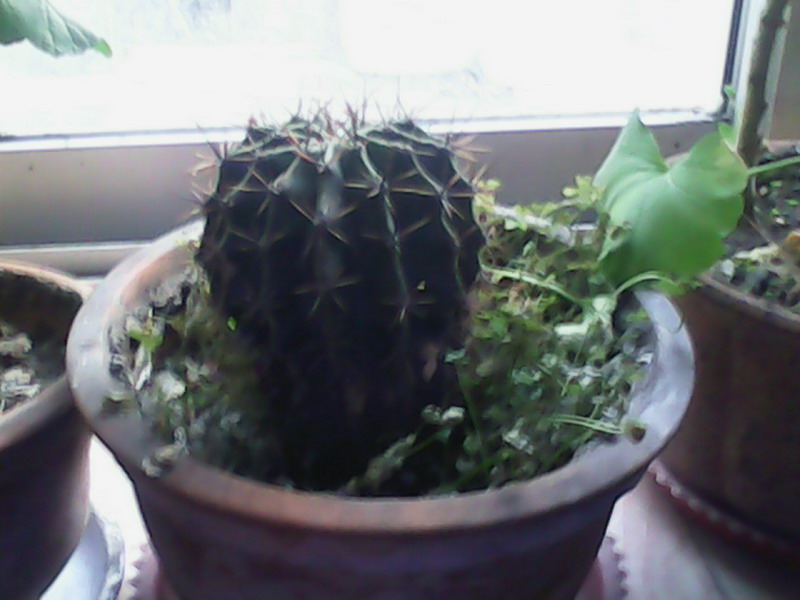 看!这株是小仙人球。我已经好久好久没给它浇水了,至于是多久我也忘了。仙人球上的小刺又尖又长的,你若用手一碰,肯定是一针见血,因为我就试过,有过"血"的教训。
