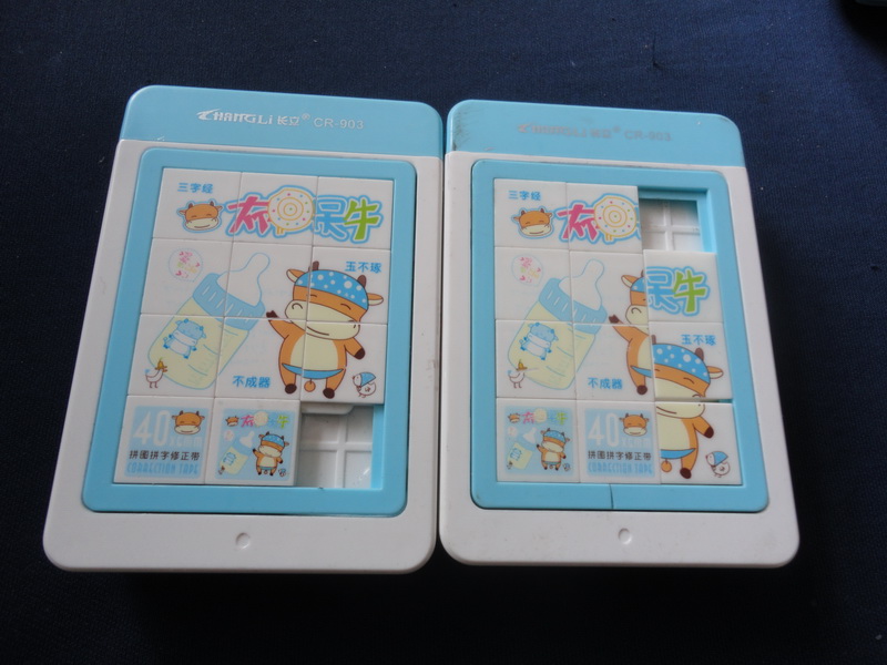 最近畅销着一种拼图涂改带,几乎10个人里,有9个人有这种涂改带,不论男女,都十分喜欢。因为它的设计,利用了孩子们爱玩的天性,它有可爱的小奶牛,有美丽的小白兔,还有勇猛的英雄联盟。当你写完作业后,无聊时,可以玩玩我们的小拼图呢!