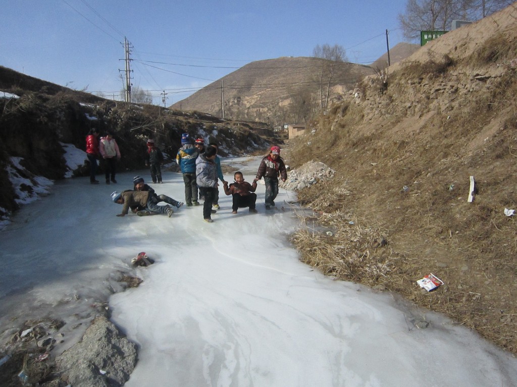 在村庄里,孩子们在玩耍,他(她)们在寒风中笑颜逐开,在堆雪人或打雪仗,活在雪地里画画。可爱的小猫在雪地里画梅花,小狗在雪地里追逐。孩子们与动物融为一体,为自然增添趣味。我也喜欢和朋友一起打雪仗堆雪人,在雪地里追逐打闹,满身是雪,可也快乐高兴。