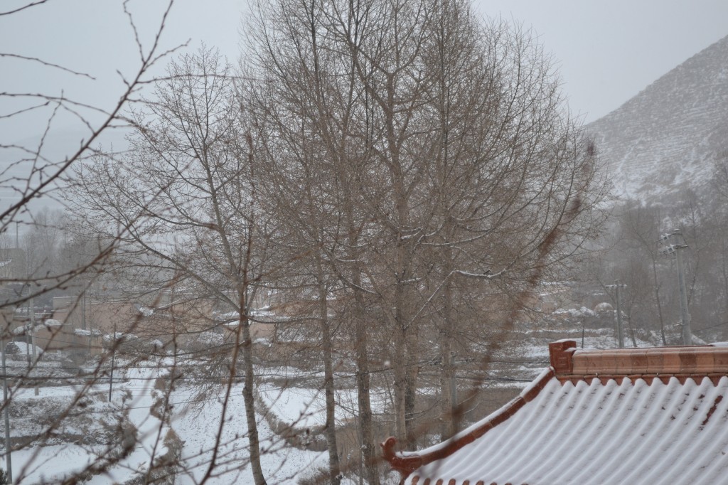 远处的人山上,白茫茫的一片,这给自然增添了一番趣味。山上的大树,玉树琼浆,银装素裹,却在高山的气息下以自己坚毅不屈的精神生存着,它精神可歌可泣。近处的小溪,结着一层厚厚的冰,很滑,孩子们在上面玩耍,成为小溪别具一格的特点。