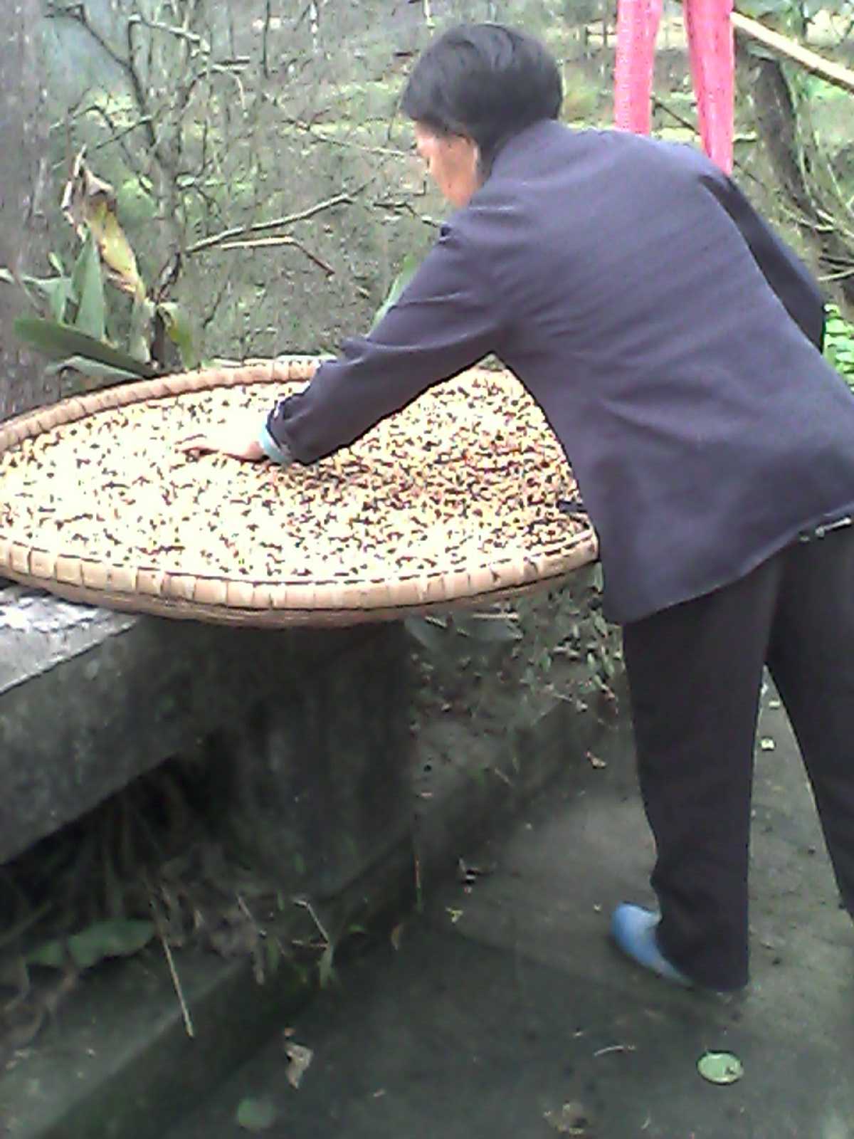 瞧,豆子在簸箕里享受着阳光能,看着满簸箕的豆子,感到奇怪了,簸箕那么轻,面积也是不是很大。它能承受的住这么多的豆子吗?若是翻倒怎么办?这些想法使我不得不走近一看,原来用簸箕晒豆子,得放平衡才行。