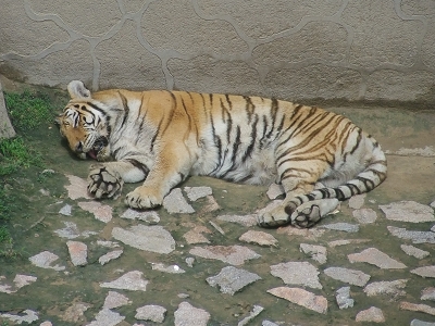 动物们真可爱,不愧是天地间最有灵气的东西。看,那一只有气无力的老虎,虽然被人类拔光了牙剪掉了指甲,但是脑袋上的王字却丝毫没有灭老虎的威风!真是佩服,我想,老虎肯定饿极了,才懒洋洋的趴在地上的。 再来看看斑马吧!只见它甩了甩尾巴,把我们连看都不看一眼,仿佛一位高傲的公主,穿着华丽的连衣裙,碍于自己的身份,不愿与其它事物接触。